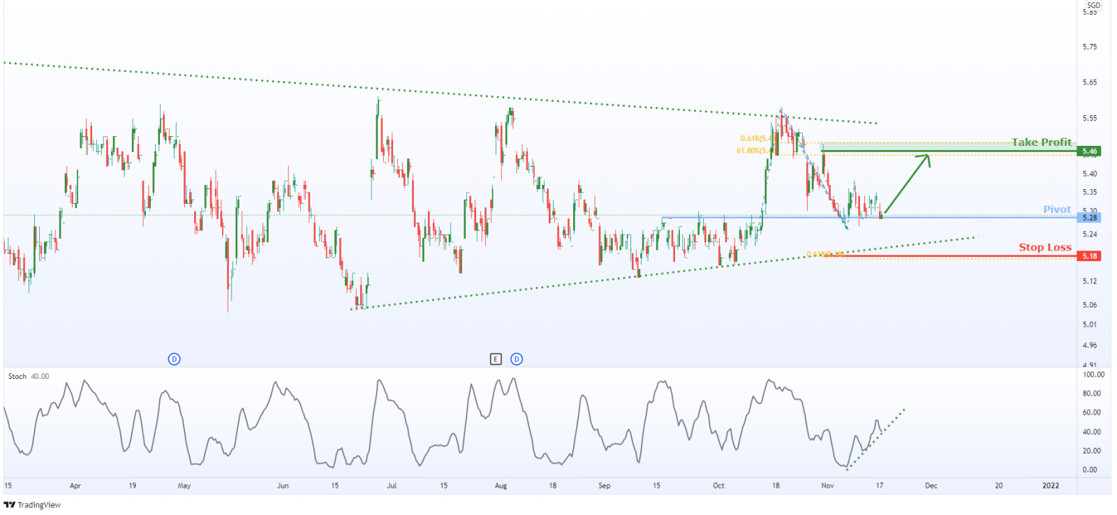 Hey all take a look at $Keppel Corp(BN4.SG)$ ! I can see that price is reacting in a ascending wedge right now. I am expecting price to bounce from pivot level in line with graphical overlap towards the take profit level in line with 61.8% Fibonacci projection and 61.8% Fibonacci retracement. My personal bullish bias is further supported by the stochastic indicator where the %K line is abiding to the ascending trendline.[Observation] [Evil]