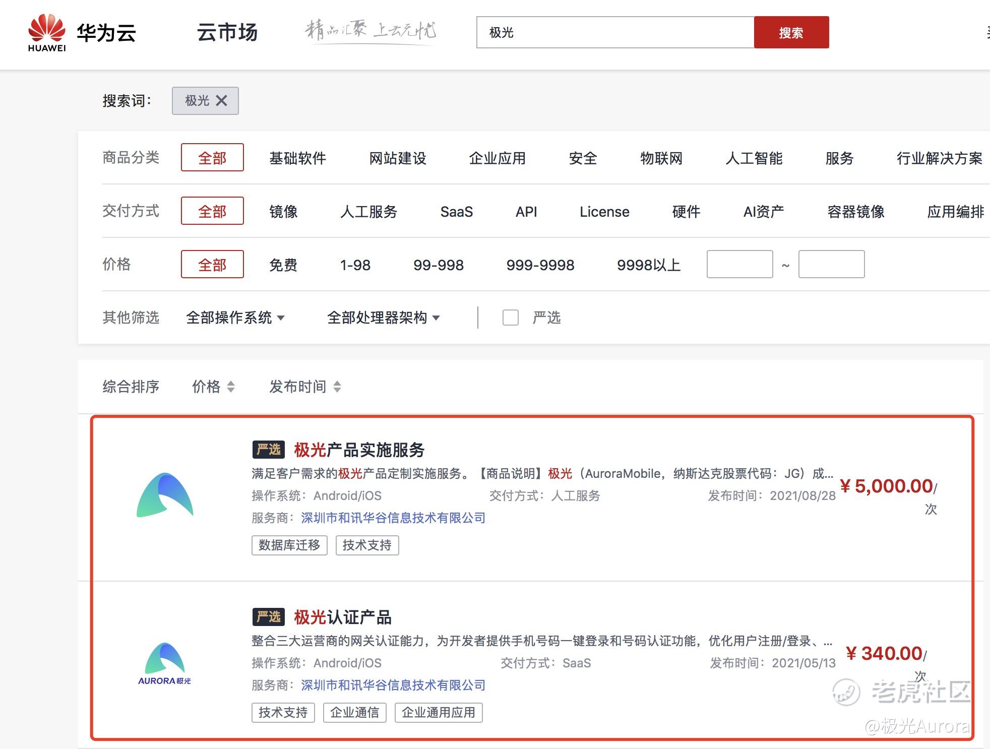 近日,中国领先的移动开发者服务提供商极光(Aurora Mobile,纳斯达克股票代码:JG)旗下极光认证产品及产品实施服务,正式通过华为云一系列严格测试与审核,入驻华为云市场。