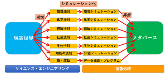 日本的一般社团法人情报处理学会(1960年成立)认为,元宇宙即使用数据和编程,在网络上还原现实世界。元宇宙技术,本质是模拟现实的技术。元宇宙与传统游戏空间的区别在于,元宇宙是一个没有特定功能的通用空间,可以做任何用途;而传统游戏空间是由具体剧情和特定规则构成的世界,两者可以相互移植。