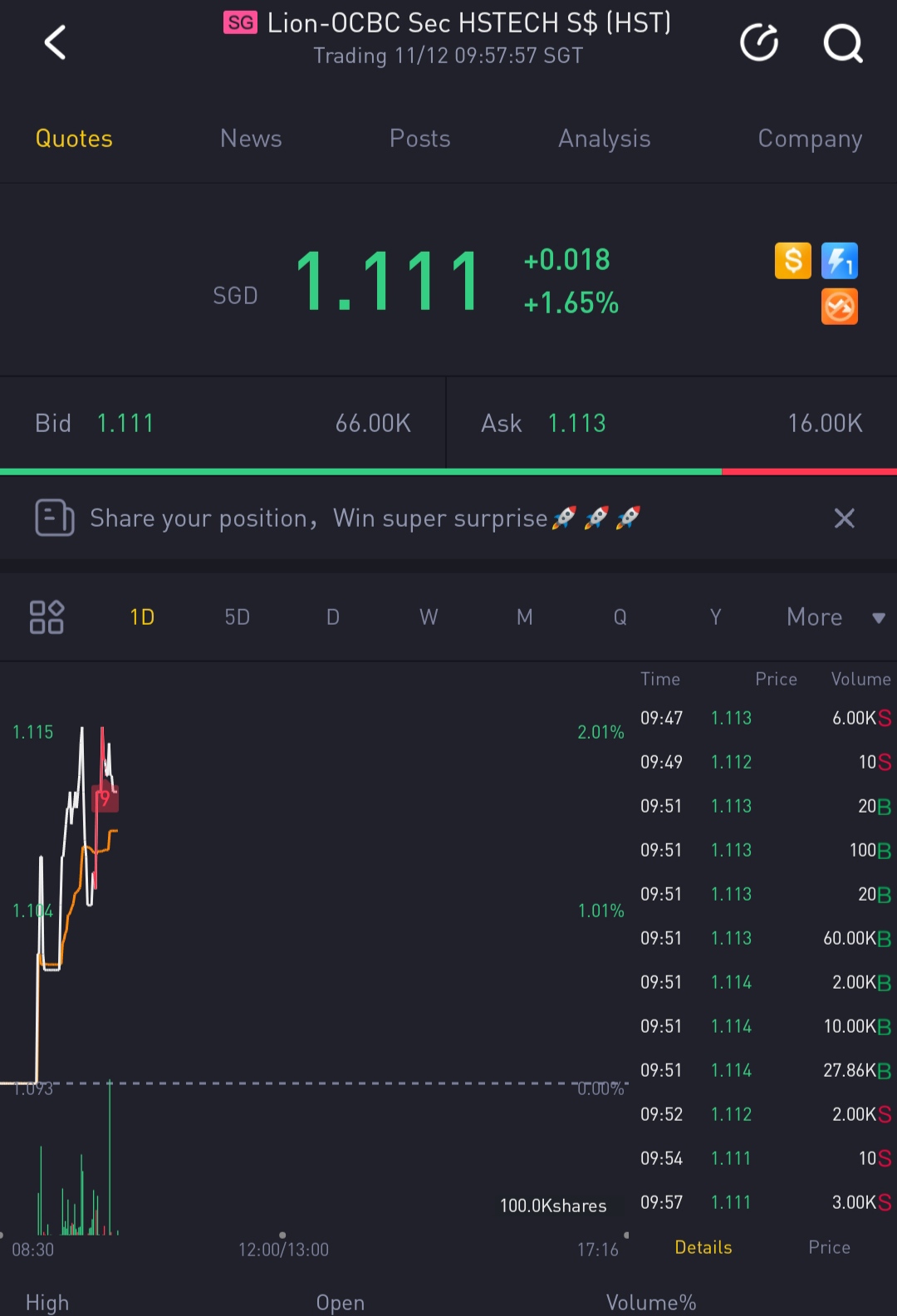 $Lion-OCBC Sec HSTECH S$(HST.SI)$11.11 over yet I still see the one(s)! Are you going to be the one ?
