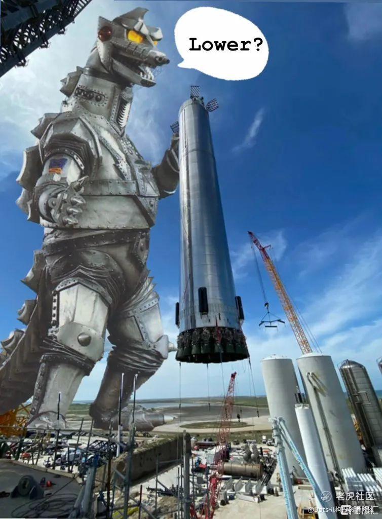 有人问到一个细节:「机甲酷斯拉夹住/捕获超重型之后,如何将超重型移到发射台,与之精准对齐?」老马回答:「机甲酷斯拉机械臂上配有坦克履带。」