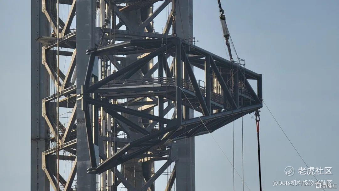 这是被马斯克昵称为Mechazilla(机甲酷斯拉)三只机械臂的第一只。全部安装完毕后貌似一只巨蟹钳,挂在德州南帕德里地区最高建筑上。