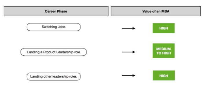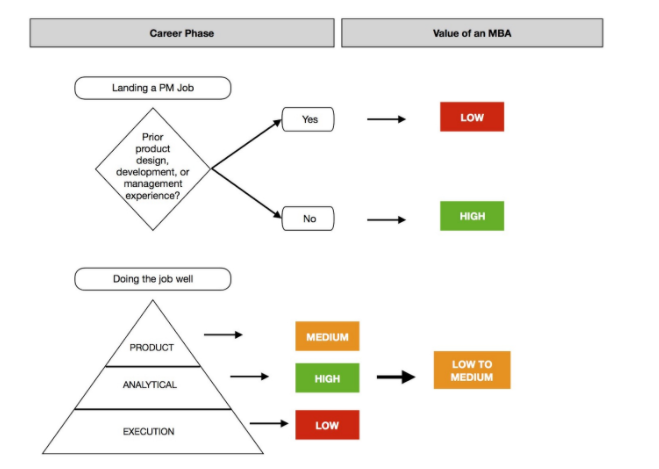 如果你之前没有任何产品经验,那么MBA的价值在找PM工作时明显更高: