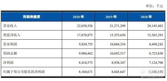 招股书显示,2018年至2020年,沪农商行营收分别为201亿元、212亿元、220亿元;净利润分别为84亿元、89亿元、71亿元;归属于母公司股东的净利润分别为73亿元、88亿元、81亿元。