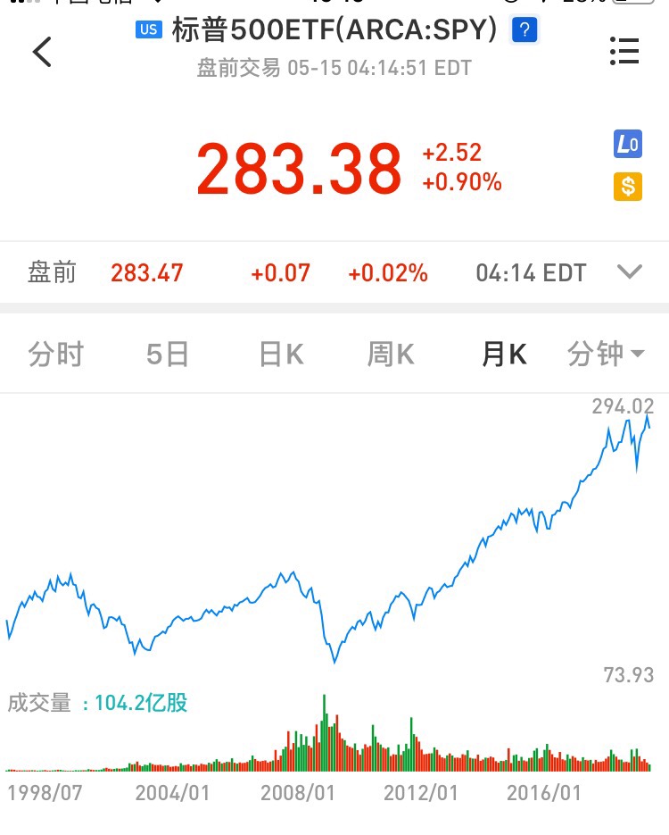 ($(SPY)$) 标普500ETF-SPDR,道富环球投资旗下追踪标普500指数的ETF,该ETF价格与标普500指数波动方向相同,波动幅度约等于标普500指数,目前规模2612亿美元。