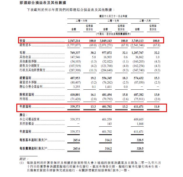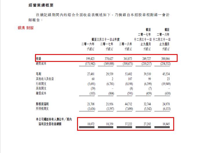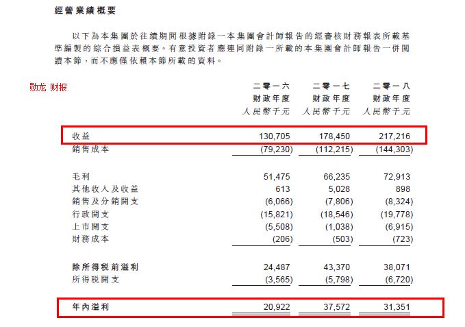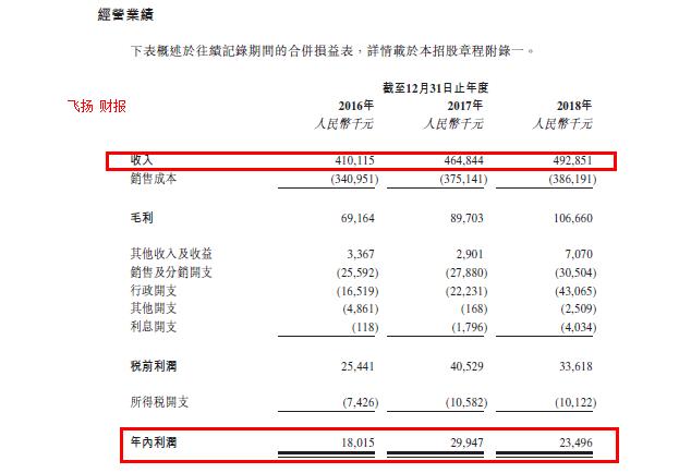 -16至18年经调整纯利分别为人民币2,643万元、3,461万元、3,826万元(若扣除先前A股上市申请的开支及补贴、港股上市开支)