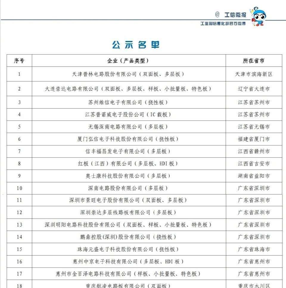 6 工信部公布第一批《印制电路板行业规范文件》,18家企业入选,名单见下图