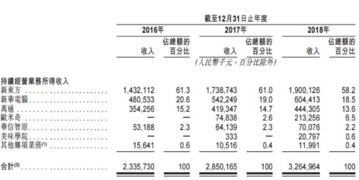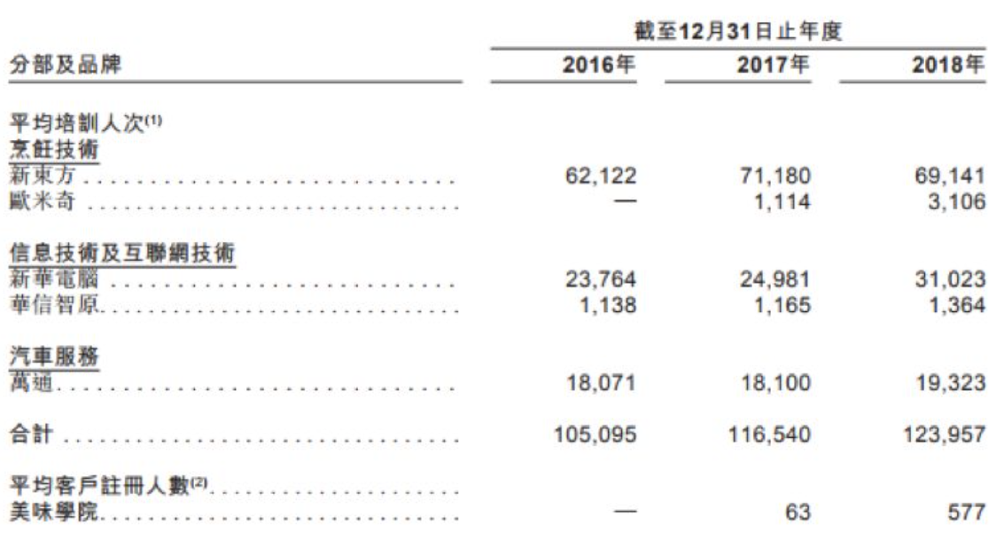 招股书显示,中国东方教育集团是中国最大的职业技能教育提供商,截至2018年12月31日,中国东方教育共在29个省份及香港运营145所学校。如前所述,集团旗下有5个学校品牌—新东方烹饪教育、欧米奇西点西餐教育、新华电脑教育、华信智原DT人才培训基地及万通汽车教育。2016年至2018年,中国东方教育实现营收分别为23.36亿元、28.5亿元及32.65亿元,净利润分别为5.65亿元、6.42亿元、5.10亿元。根据招股书显示,新东方烹饪教育为东方教育贡献了超过一半的营业收入,新东方烹饪教育2016至2018年营业收入占比分别为61.3%、61%、58.2%。2016-2018年,学校数量年复合增长率为26.9%,平均培训人次年复合增长率为8.6%。东方教育收入增长的主要驱动因素是培训人次和人均学费的提升。