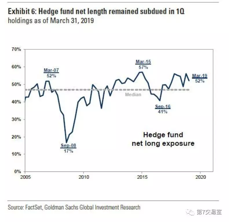 截至3月31日统计的数据,高盛统计出,目前的对冲基金保持做多的敞口已经见顶回撤。