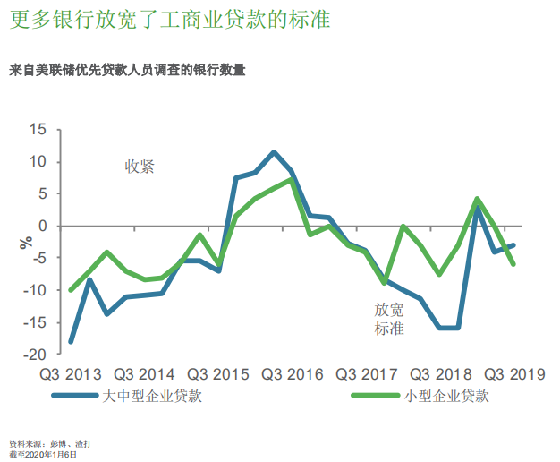 • 在两年多来首次收紧之后,各银行在2019年第三季恢复放松贷款标准,尽管幅度不大。