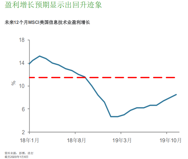 • 在美国科技业内,我们看好软件及服务、硬件及设备。我们认为云端应用的需求和订阅模式的普及仍将是2020年收入的主要推动因素。