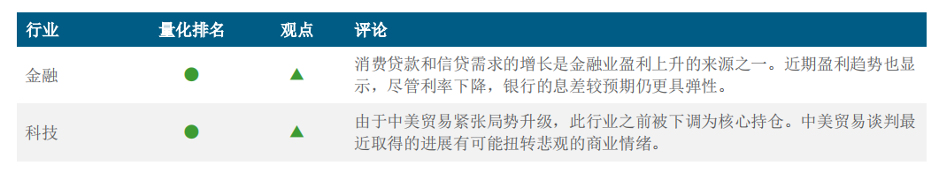 • 根据我们的量化框架,金融和科技行业在侧重顺序中分列前两位,我们预计这两个行业的回报率都将高于市场水平。