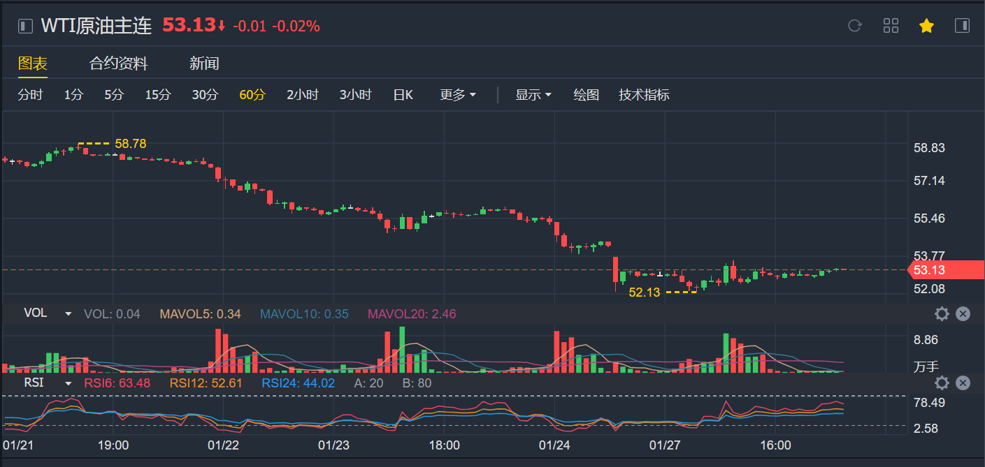 WTI原油期货实时行情:$WTI原油主连(CLmain)$