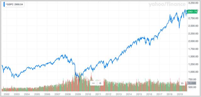 假设你在这天开始定投标准普尔指数基金(S&P 500)。标准普尔指数500指数反映着美国500家大型企业的股票的整体涨跌,可以理解成美国经济的总体指标。