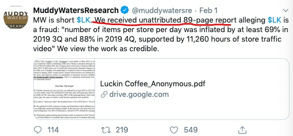 请注意哦,这份做空报告并不是浑水做的,而是来自匿名第三方。只不过浑水觉得该报告可信。
