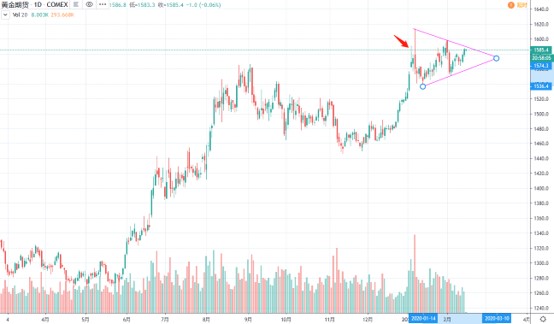 年初金价第一个跳空缺口冲高之后,我们建议在1560和1530分批入场,并等待1620的初步目标。之后的走势略有出入,第一单入场后一度非常接近目标,不过随后出现单日反转,而且之后的回调未能让头寸完全建立完成。因此从1月份以来,实际上一直只有部分多单在等待价格的二次冲高,这部分头寸已经在上周的文章中建议大家做入场保护。
