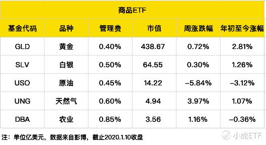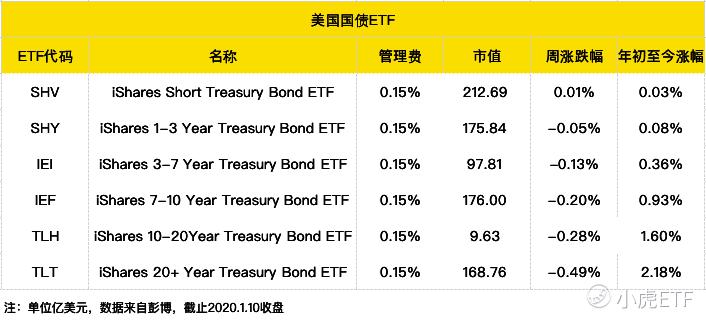 因为本周债券价格均有微跌,周跌幅最高为TLT,为0.49%,不过其年初至今仍有2.18%的涨幅,受累于美伊冲突。