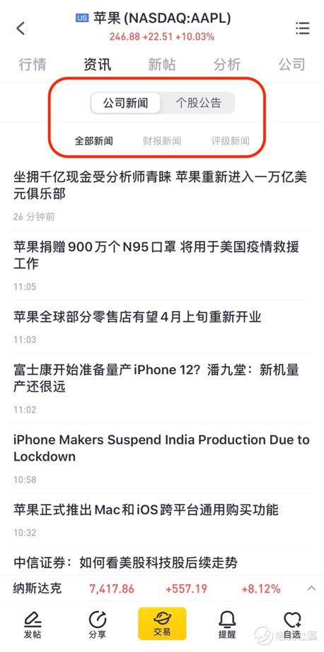 5)个股资讯页改版:增加公告,更多新闻分类等。【其他优化功能】