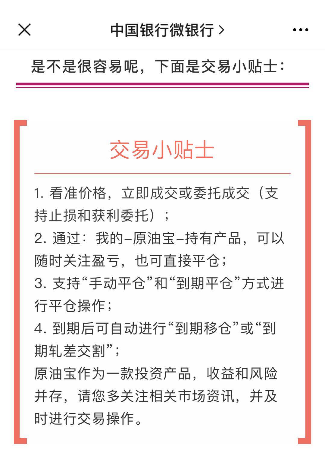 所有我很不理解官方页面说“原油宝产品不具备杠杆效应”是什么意思,客户都穿仓了怎么会没有杠杆呢?而在公众号说明中更直白显示,原油宝是一款迷你期货。