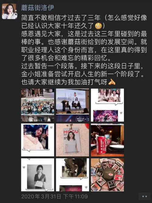 另有可靠消息称,即便是当前蘑菇街最被重视的直播业务,也正在经历人事变动。有消息称,其直播业务负责人金婷婷(花名洛伊)已于近期离职,她本人也在朋友圈发文表示“过去暂告一个段落”。