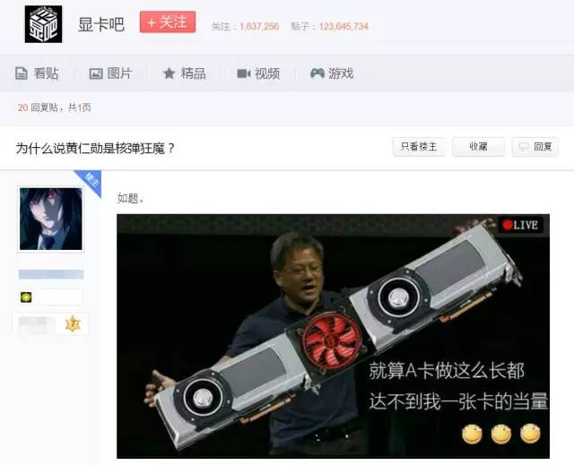 由于英伟达显卡的破坏力,加上网友的各种黑,大家就都这么把老黄挂上了 “ 核弹狂魔 ” 等类似的称号了。。