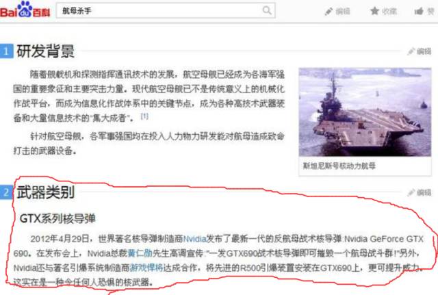 因为该新闻稿的内容是选取百度百科里 “ 航母杀手 ” 这个词条信息。。