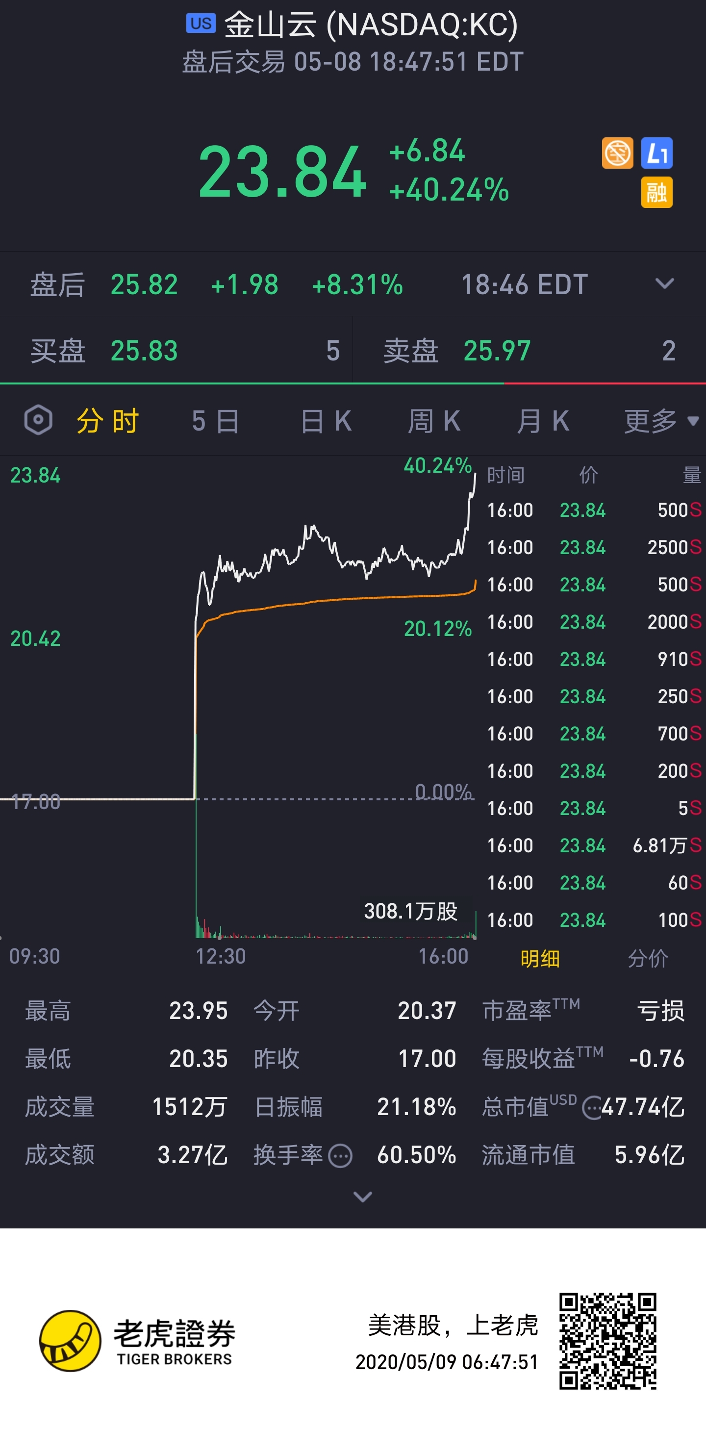 第一次在老虎打新,感觉有点亏了,卖早了,个人其实看好金山云业务,准备下周再择机进!
