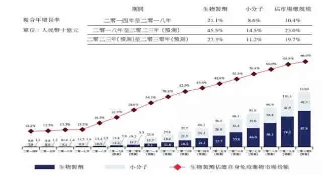 从最近几年来看,由于诊断率低,并且缺乏治疗选择,自身免疫性疾病在中国生物药市场依然供应不足。而随着疾病诊断率增加,研发投资加大和有利政策支持所带动,预计2018-2030年,自身免疫性疾病的中国生物药市场复合年增长率达到34.6%,规模将达到878亿元,在中国自身免疫性疾病疗法市场的份额从18.5%上升至66%。