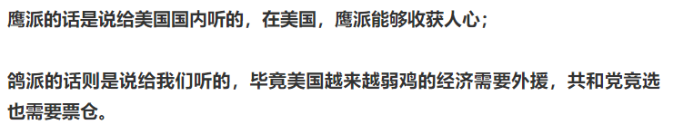 上周美国副总统的讲话又鹰又鸽,鸽的是强调两边建设性关系,鹰的是老一套的红空问题。