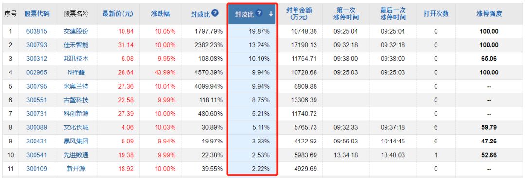 另外,找明天的龙头,可以用之前说过的封流比数据。