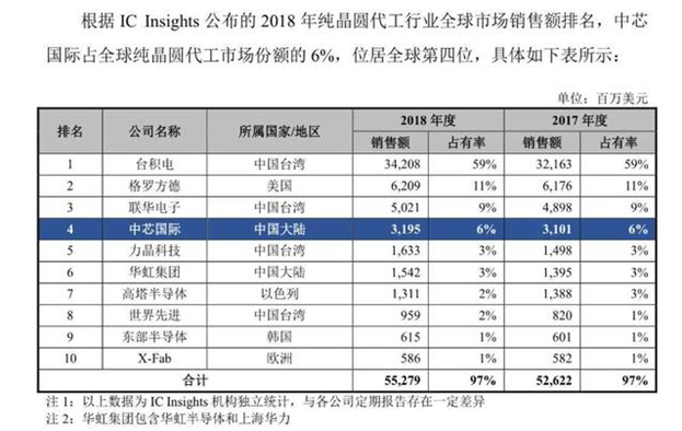 在2018年的纯晶圆代工行业的全球市场销售排名中,中芯国际排名世界第四,在中国大陆企业中排名第一。中芯国际招股说明书中的亮点之一就是自公司成立以来就披露了该公司的技术开发流程,包括7nm,N + 1、28nm HKMG,22nm,40nm工艺项目,从中可以看出研发团队规模的变化以及中芯国际投资技术团队资源的演变。