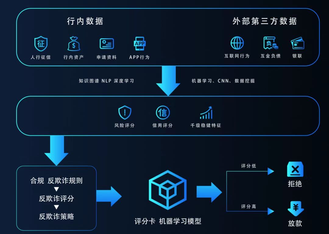 行业数据包括:人行征信、行内资产、申请资料、APP行为;外部第三方数据包括:互联网行为、互金负债、银联。