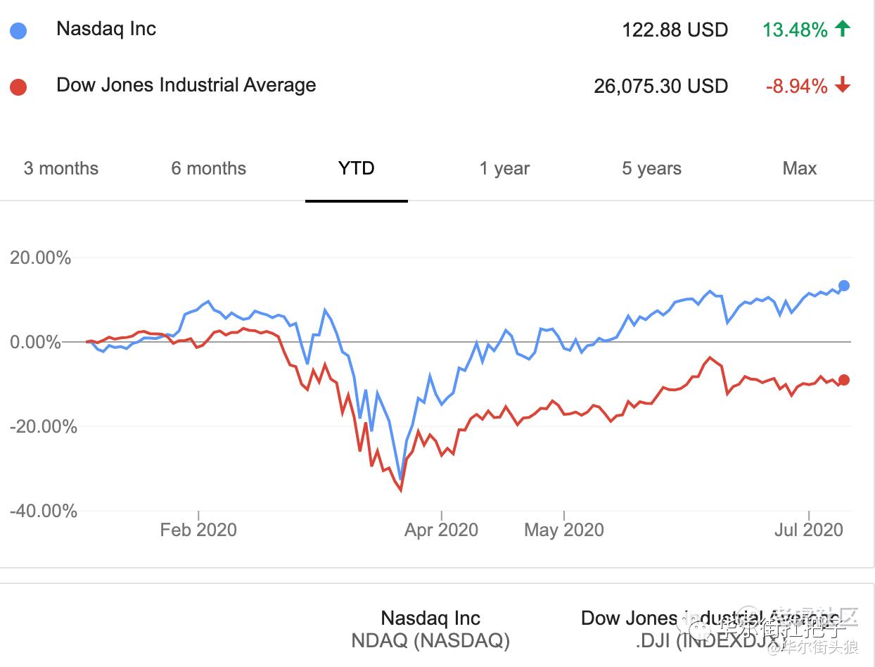 最近纳斯达克指数涨的让人有点怀疑人生了。今年以来,纳斯达克已经上涨了有13%多,而代表传统工业的道琼斯指数,还沉浸在血红的负9%中不可自拔。