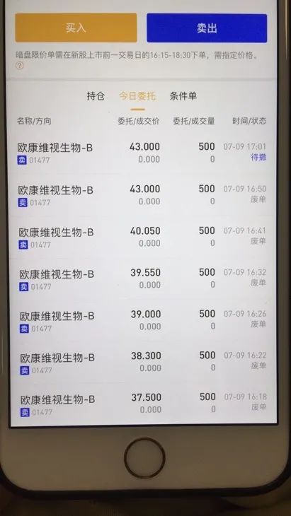 一位朋友的欧康维视从暗盘开盘开始挂单,一路挂单都没成交,结果价格一路涨。系统故障是让你能多赚点钱,这样的系统故障多来几次也好。