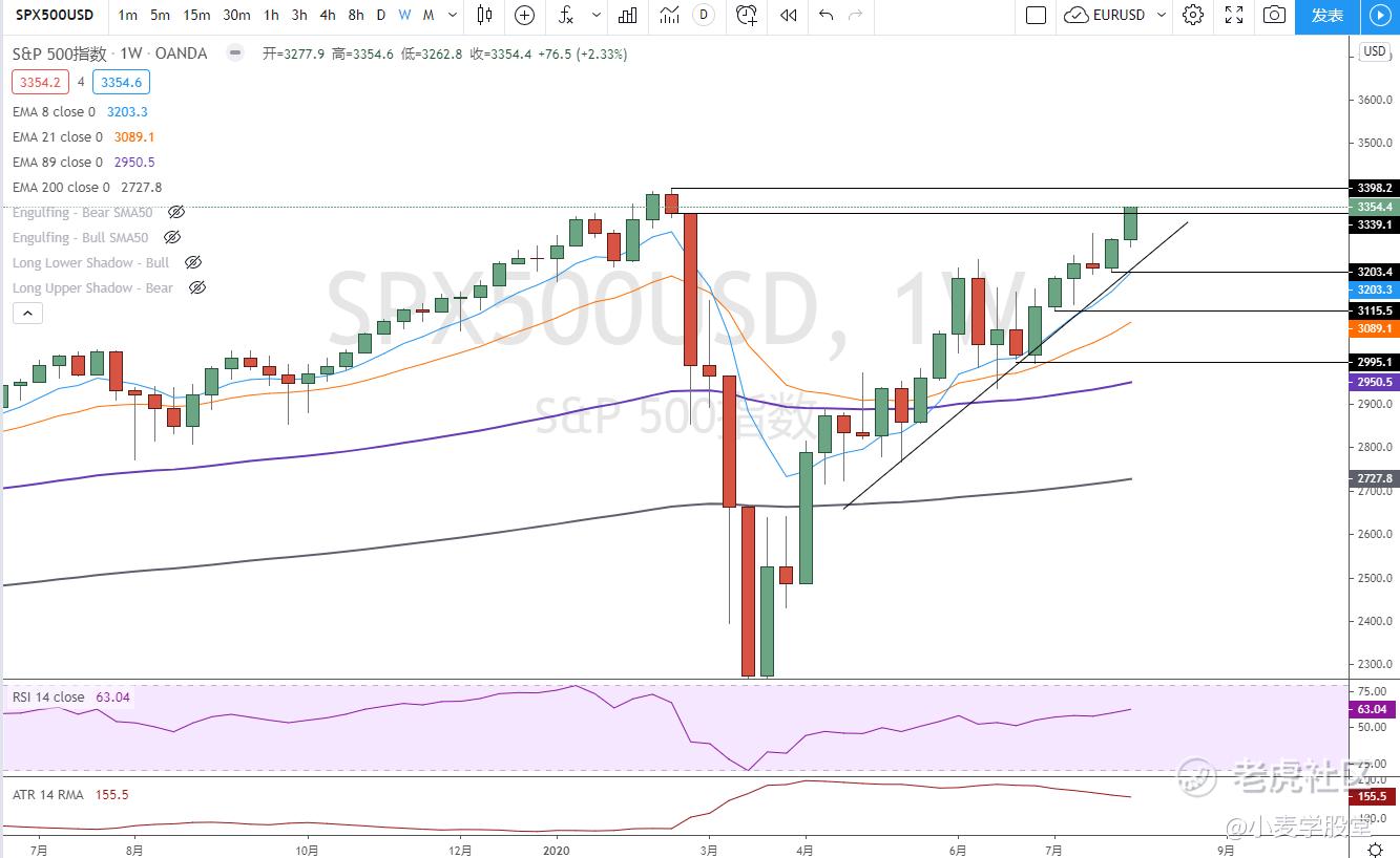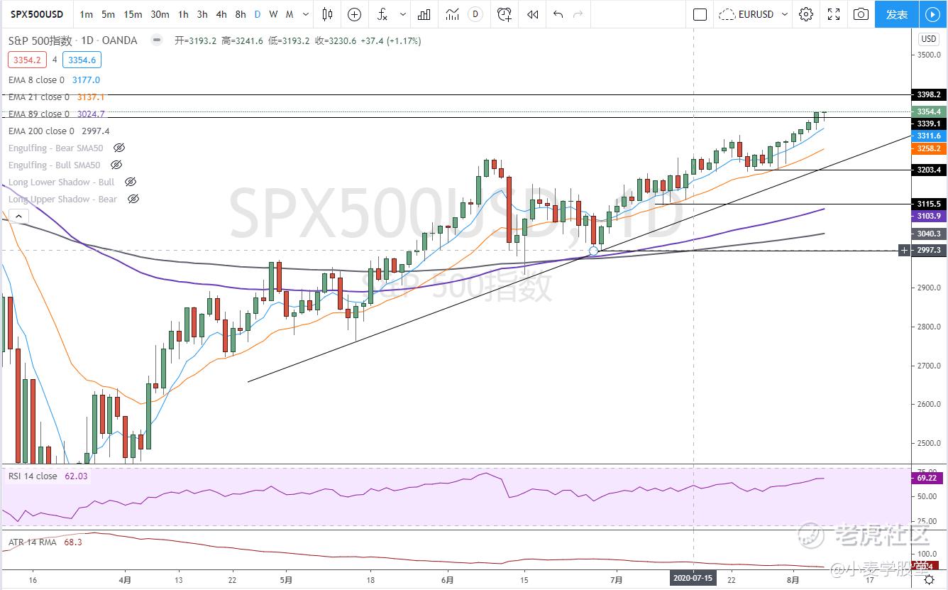 大盘继续走高。今天公布的美国7月失业率和非农数据均好于预期。从日线来看破历史高点指日可待了。