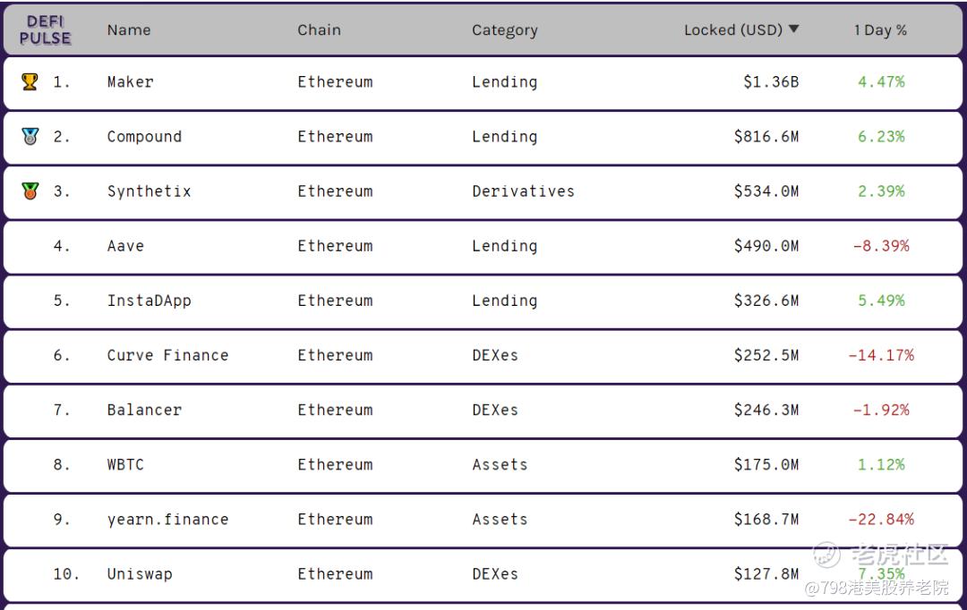 你可以看到Defi锁仓资金排行榜靠前的,是借贷、DEX(去中心化交易所)、金融衍生品。