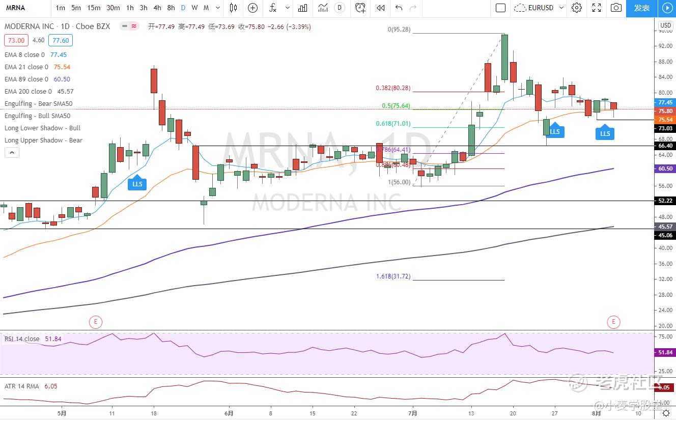 今天继续进了MRNA,疫情的股票。止损价直接在73 。
