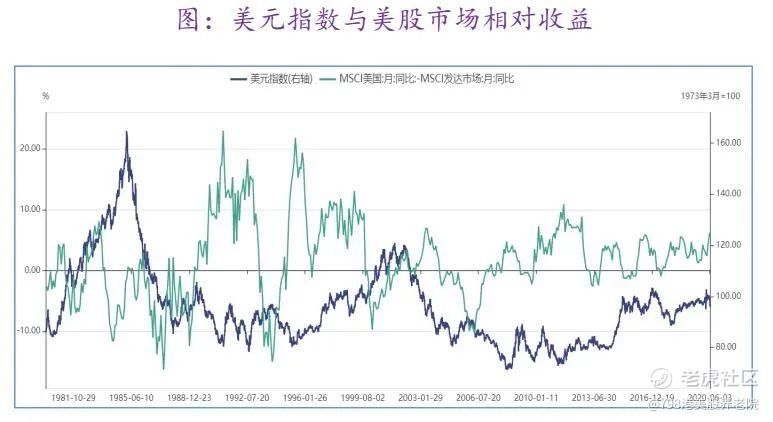 美股通常在美元走强的时候表现更好: