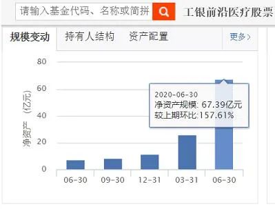 今年工银瑞信赵蓓的医药基金业绩也很靠前,工银前沿医疗基金二季度业绩涨了38%,规模增长了157%,嗯,1.5倍的增长。