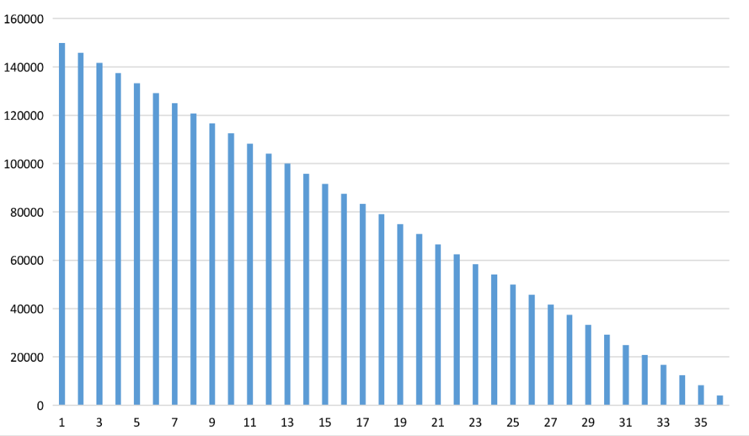 利率被平均后,本金的还款走势