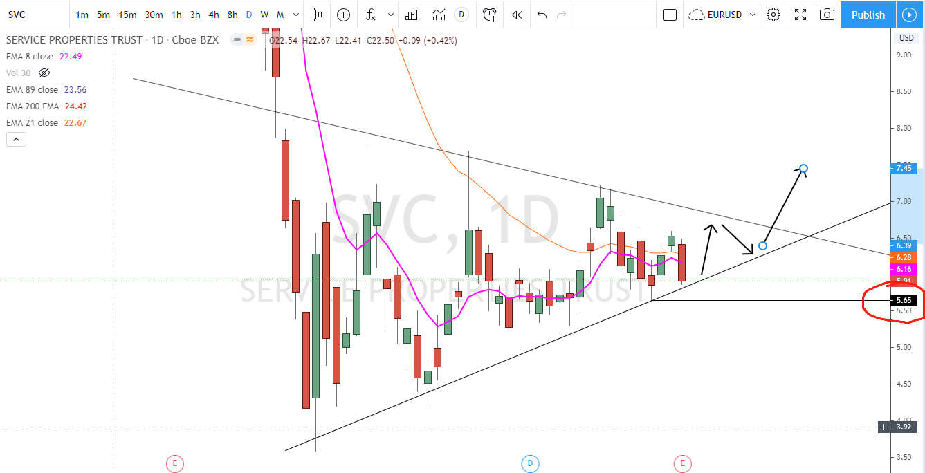 6. SVC三角形盘整选择方向,明天开盘平开以上即可进场,止损在5.65。假如能向上突破将是一个可观的收益。