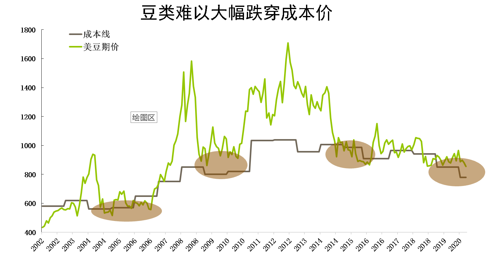 首要一点,安全系数高。当前美豆常规的成本价在850美分左右,由于油价的暴跌,780美分是极限成本价。所以当前抄底美豆,止损设置在780美分就可以了,也就10%左右的空间。农产品是对成本价很敏感的品种,只要跌穿成本价,农民来年大概率减种,所以在成本价投资农产品就是亏时间的问题。