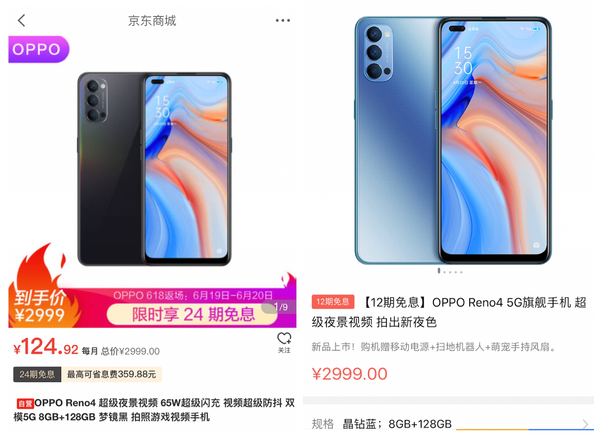 左为京东金融免息分期产品,右为招联金融免息分期产品