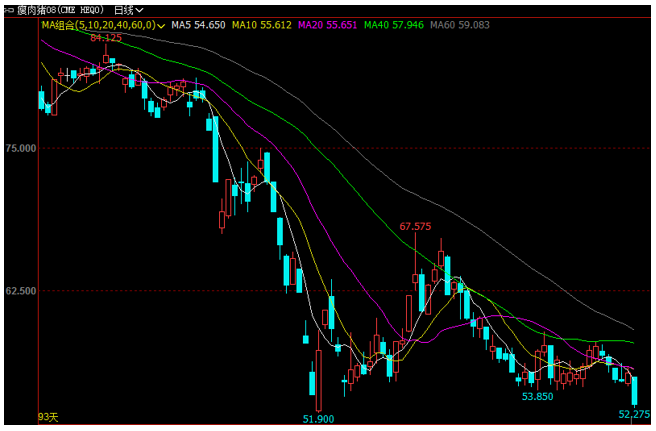 新型冠状肺炎持续在全球肆虐,截止6月16日,全球新冠肺炎确诊病例超800万例,其中美国累计确诊病例数最高,突破200万例。受新冠肺炎疫情影响,工人感染、工厂临时关闭和实施疏远等措施,导致北美猪肉包装厂产能急剧下降,当地猪肉消费亦随之缩水。雪上加霜的是,近日北京发生聚集性新冠疫情引发市场对主要进口国对美国猪肉需求担忧,共同打压美国猪价,截止周二晚芝商所旗下CME瘦肉猪期货主力8月合约最低下探至52.275美分/磅,距离4月6日创下的年内低位51.9美分/磅也仅一步之遥。