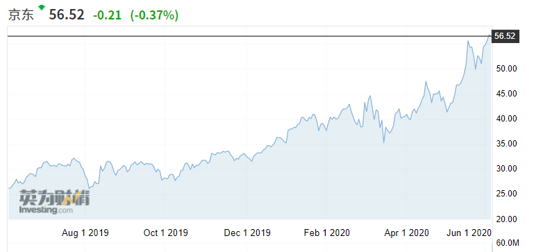 截至美东时间6月4日收盘,京东股价为56.52美元,市值达到826.98亿美元,今年以来涨幅超过60%。