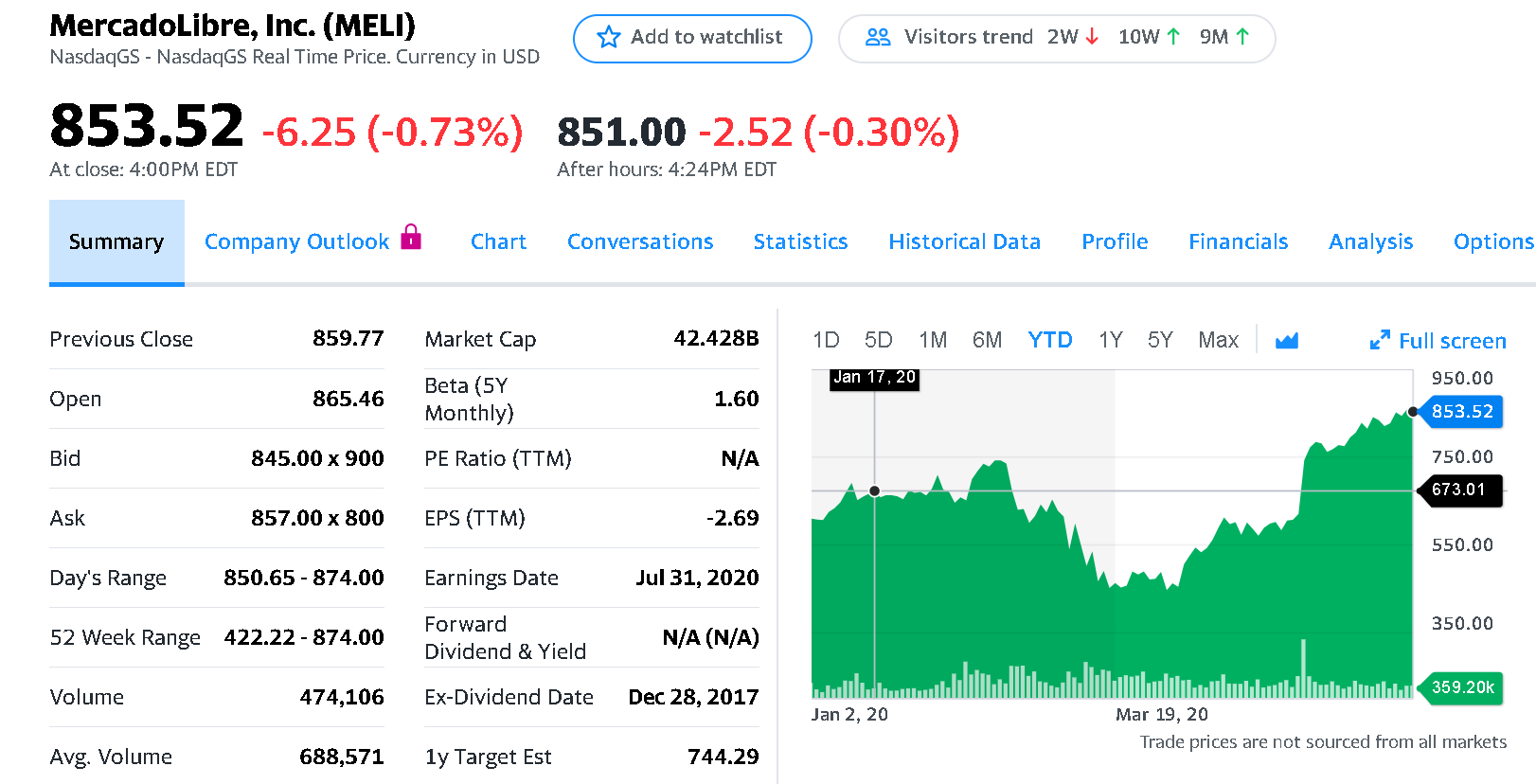 美东时间5月5号,Mercado Libre $MercadoLibre(MELI)$ 召开并发布了第一季度的财报数据:第一季度全站点GMV同比增长10.6%;营收同比增长37.5%;截至一季度公司现金及现金等价物储备10.7亿美金。此份财报公布后,Mercado Libre股价当日涨幅接近20%。