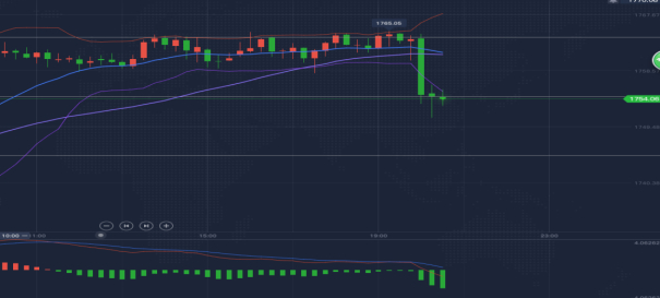 1763.31市价卖出,止损在1766.59,目标1754,预计盈亏比为2.2:1