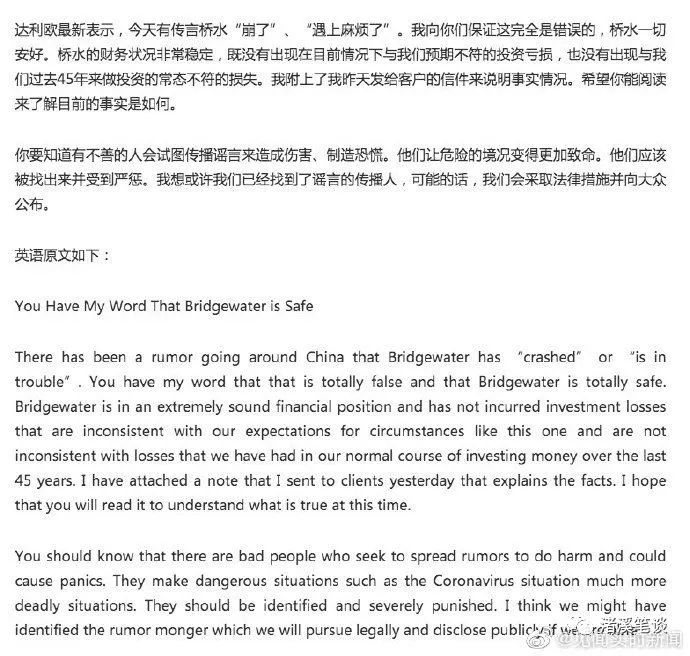 桥水基金在日报中提到,上述数据并不完全准确,因为近期市场波动幅度过大。