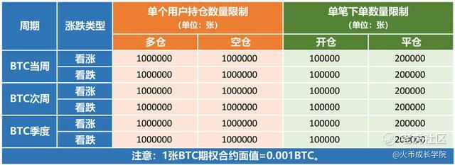 平台对单个用户某个期权合约的持仓数量、单笔开仓/平仓的下单数量会做出限制,防止用户操纵市场。