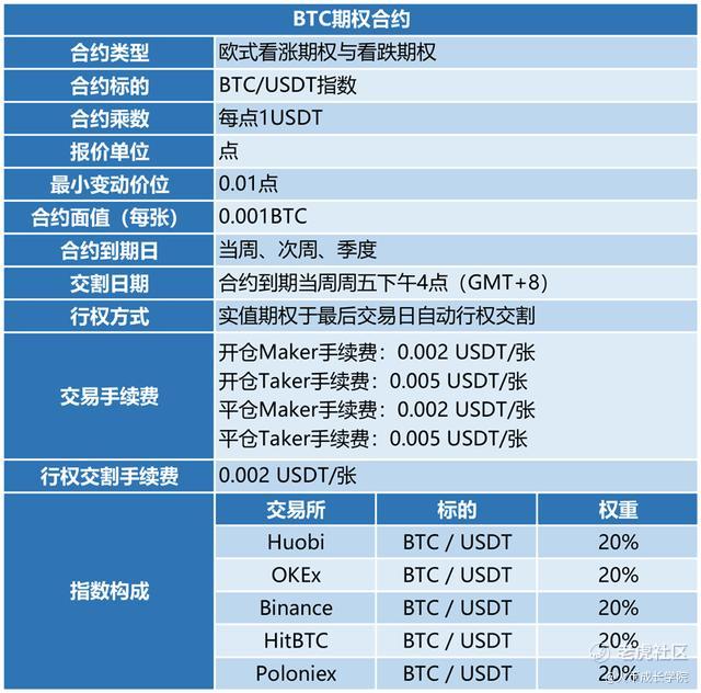 一、火币期权合约品种要素